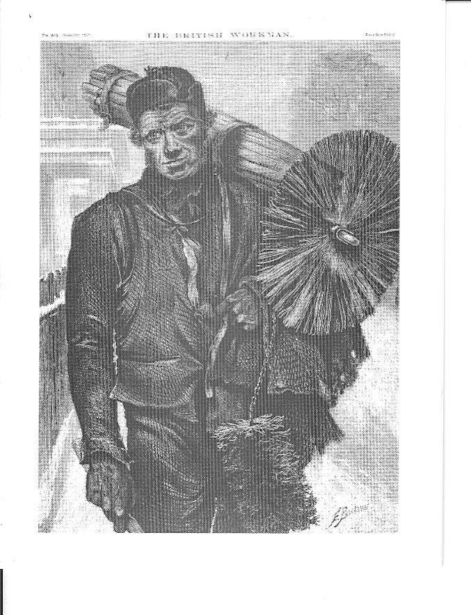 Another story is of a Chimney Sweep who lost his footing, fell from the roof, and hung from the gutter. A young lady reached through a window and rescued him. They fell in love and married.